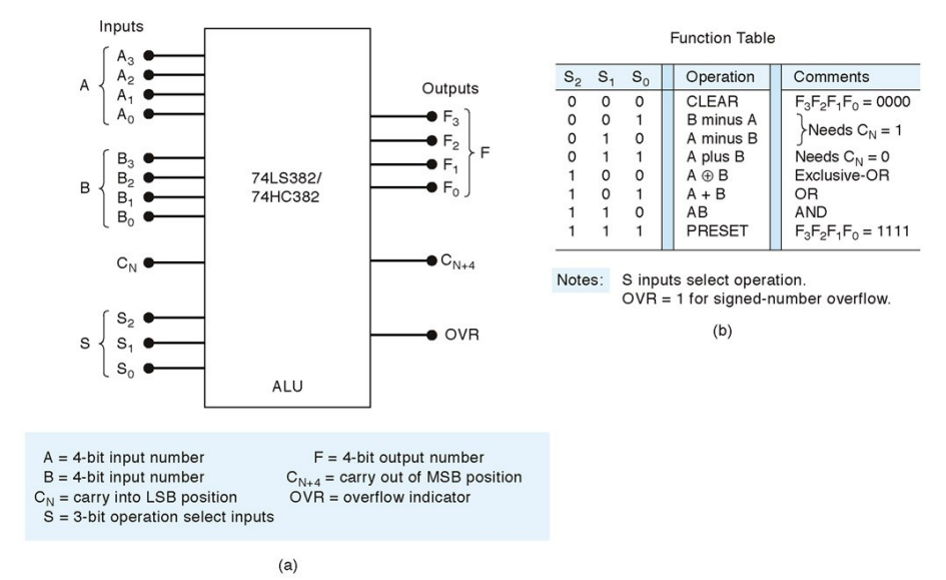 아래는 4비트 산술/논리 연산을 수행하는 74LS382/74HC382 ALU의 블럭 다이어그램이다.