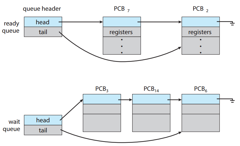 준비 큐와 여러 대기 큐는 PCB의 연결리스트로 구현된다.