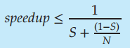 암달의 법칙(Amdahl's Law)은 순차 실행 구성 요소와 병렬 실행 구성 요소로 이루어진 응용 프로그램에 추가의 계산 코어를 더했을때 얻을 수 있는 성능 이득을 나타내는 공식이다. N은 코어의 개수, S는 순차적으로 실행되어야만 하는 구성 요소, Speedup은 성능 이득이다.