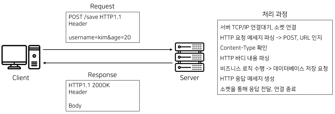 웹 클라이언트와 웹서버(또는 WAS)는 HTTP로 통신한다. 요청 메세지로부터 응답 메세지를 만들려면 웹서버는 다음의 처리 과정을 거쳐야 한다.