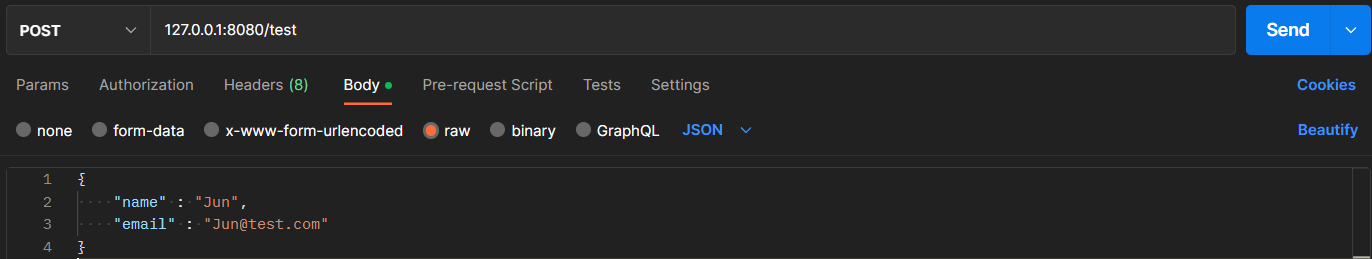 - 요청 메세지 바디에 개발자가 직접 데이터를 담아 요청하는 방식