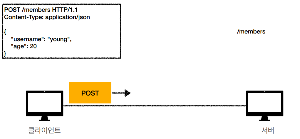 - POST, PUT, PATCH : 메시지 바디를 통해 데이터 전송
