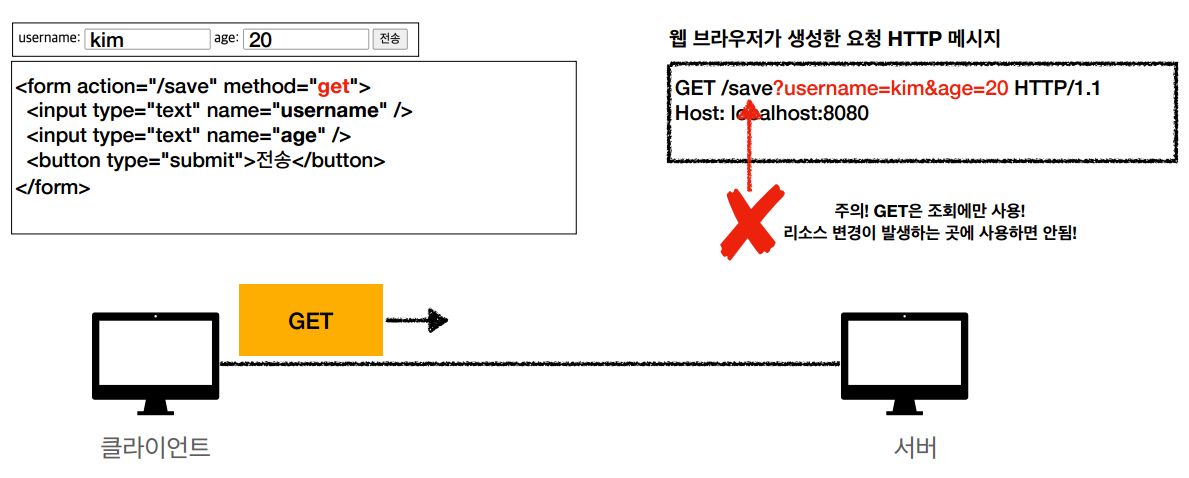 - Form의 submit 버튼을 누르면 웹브라우저가 HTTP 메시지를 생성함
