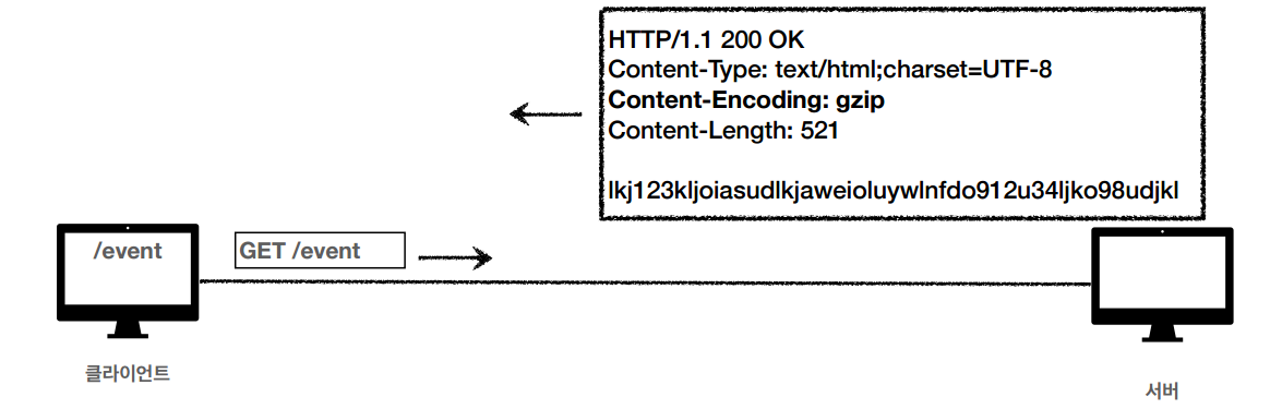 - 데이터를 전달하는 곳에서 압축 후 인코딩 헤더 추가