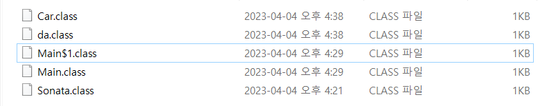 Main 클래스에서 한 개의 익명 클래스가 선언되었으며 컴파일시 Main$1.class 파일이 생성되었다. 만약 Main 클래스에서 두 개의 익명 클래스가 선언되었으면 Main$1.class, Main$2.class 파일이 생성되었을 것이다.