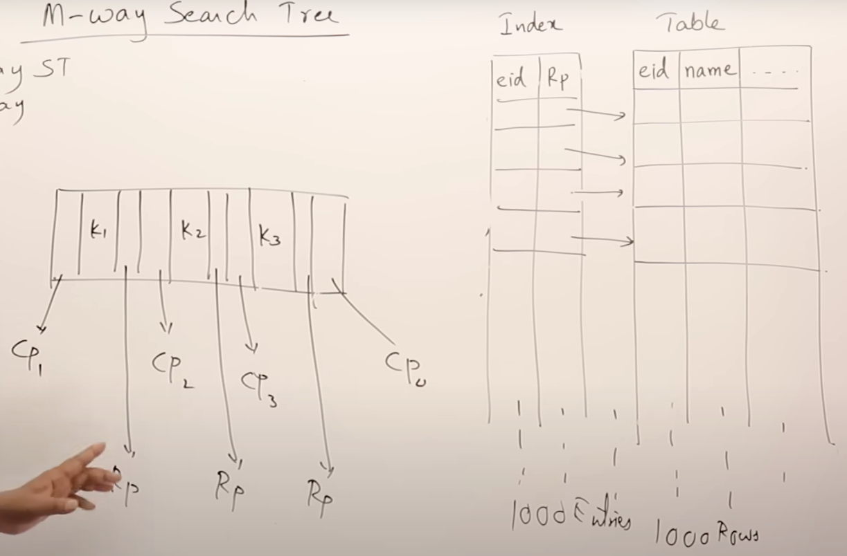 B 트리의 모든 노드는 키에 해당하는 DB 행이 저장된 블록 주소(RP)를 가지고 있다.