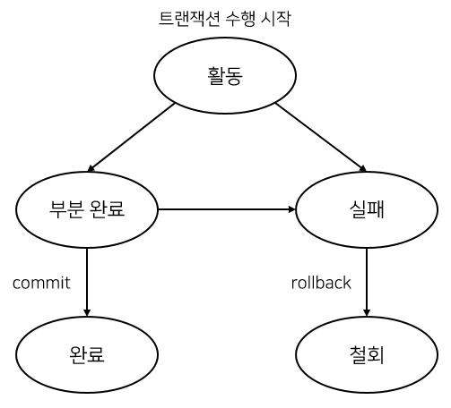 트랜잭션은 다섯 가지 상태 중 하나에 속하게 된다.